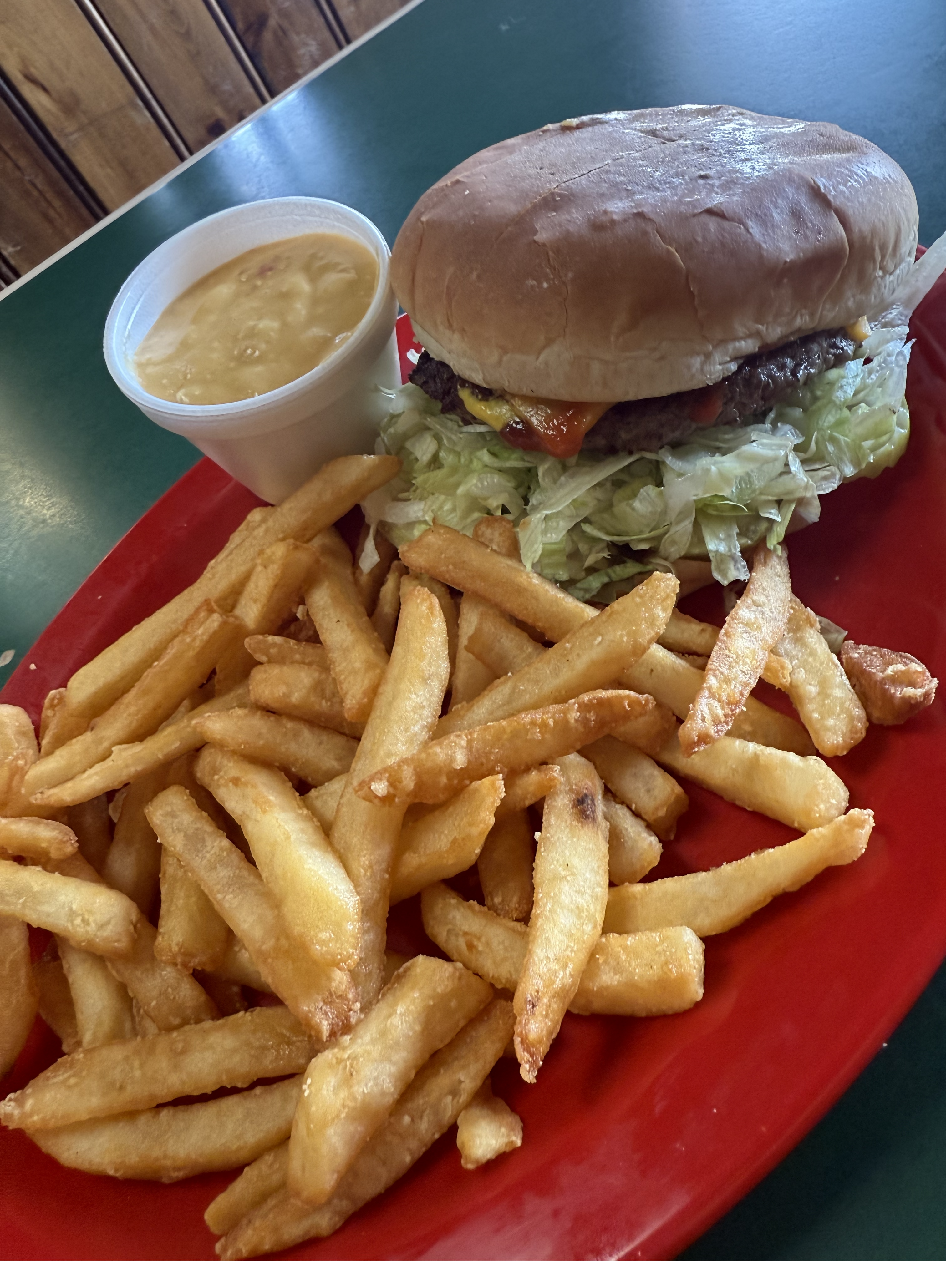 Three enchiladas ground beef or chicken covered in enchilada sauce & cheese.